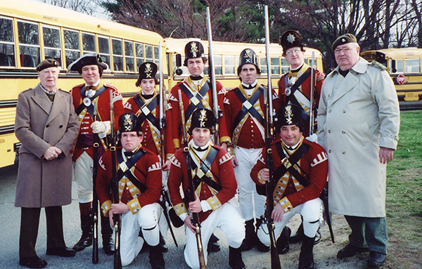 In the late 1960s, men and women flocked to the colors in order to celebrate the upcoming bicentennial of the American War for Independence. Town after town in eastern Massachusetts and southern New Hampshire re-established long dormant town militia and minute companies. They began to stage mock battles with "British regulars." In March of 1967 at the old North Bridge in Concord a local historian/photographer watched in amazement as bathrobe cloaked "regulars" in paper mache grenadier caps tried to emulate the Crown Forces troops. That man was Vincent J-R Kehoe and he was determined " ...to produce a British unit that would appear in the field as (he) opined a British soldier of the year 1775 looked. It was to eliminate the red paper cardboard caps, the musical comedy uniform coats, and the un-uniform appearance of those who had played the role of the British in that pageant-playlet that stirred (his) thoughts to hopefully better things."
